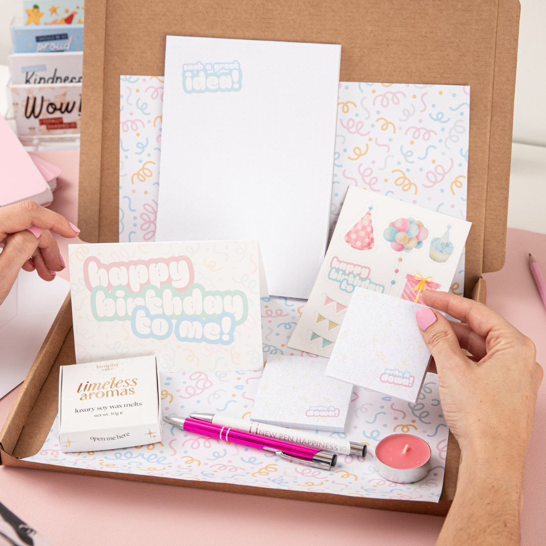 Introducing our exclusive TPTC Birthday Box, brimming with stationery and planner goodies curated just for this special collection. Whether you're shopping for a stationery-obsessed friend, a colleague who loves staying organised or treating yourself to something special, this box has it all. Perfect for birthdays that call for a little extra sparkle and organisation magic.