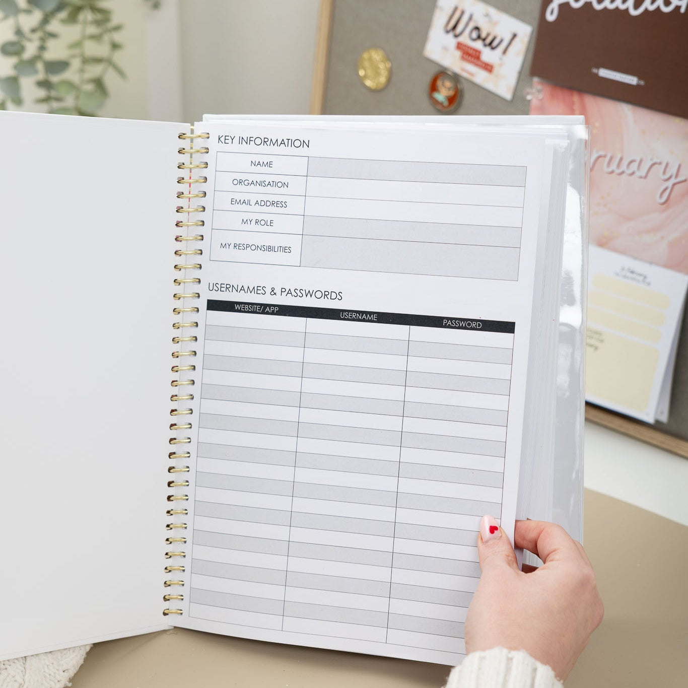 - Space for usernames and passwords